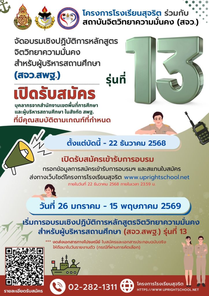 สถาบันวิชาการป้องกันประเทศ กำหนดจัดการอบรมหลักสูตรจิตวิทยาความมั่นคง สำหรับผู้บริหารสถานศึกษา (สจว.สพฐ.) รุ่นที่ 13