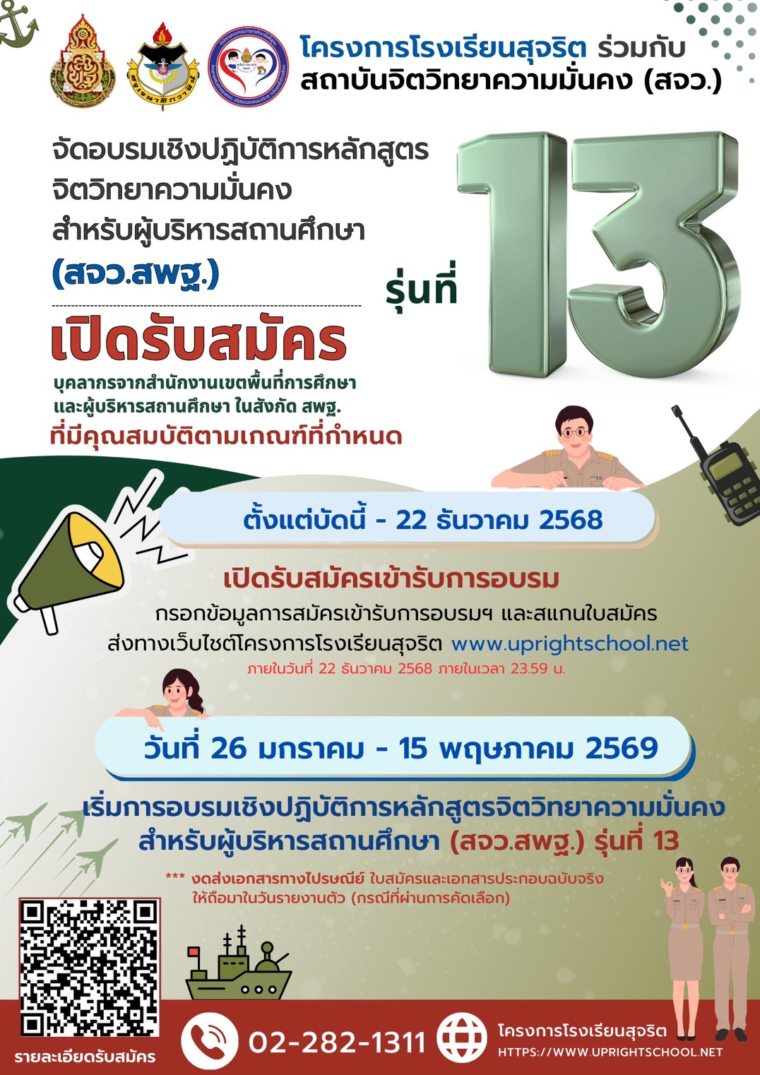โดย โครงการโรงเรียนสุจริต ร่วมกับ สถาบันจิตวิทยาความมั่นคง